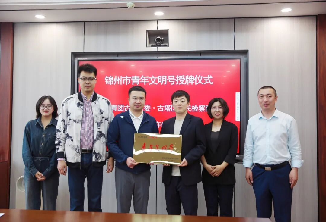 5月23日,共青团古塔区委书记王炜鹏一行为锦州市古塔区人民检察院“古·佑蕾”未成年人检察工作室颁发“锦州市青年文明号”奖牌。