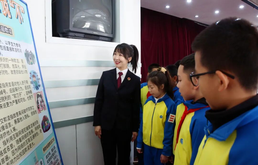 课上,检察官结合小学生的年龄特点和生活实际,通过一系列鲜活的案例与生动的影视频资料,以通俗易懂的语言向同学们详细阐述了“校园欺凌的表现形式”“实施欺凌所需承担的法律责任”“如何预防校园欺凌”等内容,并将复杂的法律条文融入到趣味问答中,与同学们进行互动交流。同学们积极踊跃发言,阐明自己的观点,眼睛里闪烁着对法律知识的渴望和对公平正义的向往。